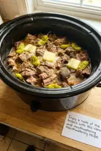 A lot of slow cooker recipes end up tasting “watery.” The mistake I used to make was adding too much broth at the start. Chicken releases a lot of liquid as it cooks!